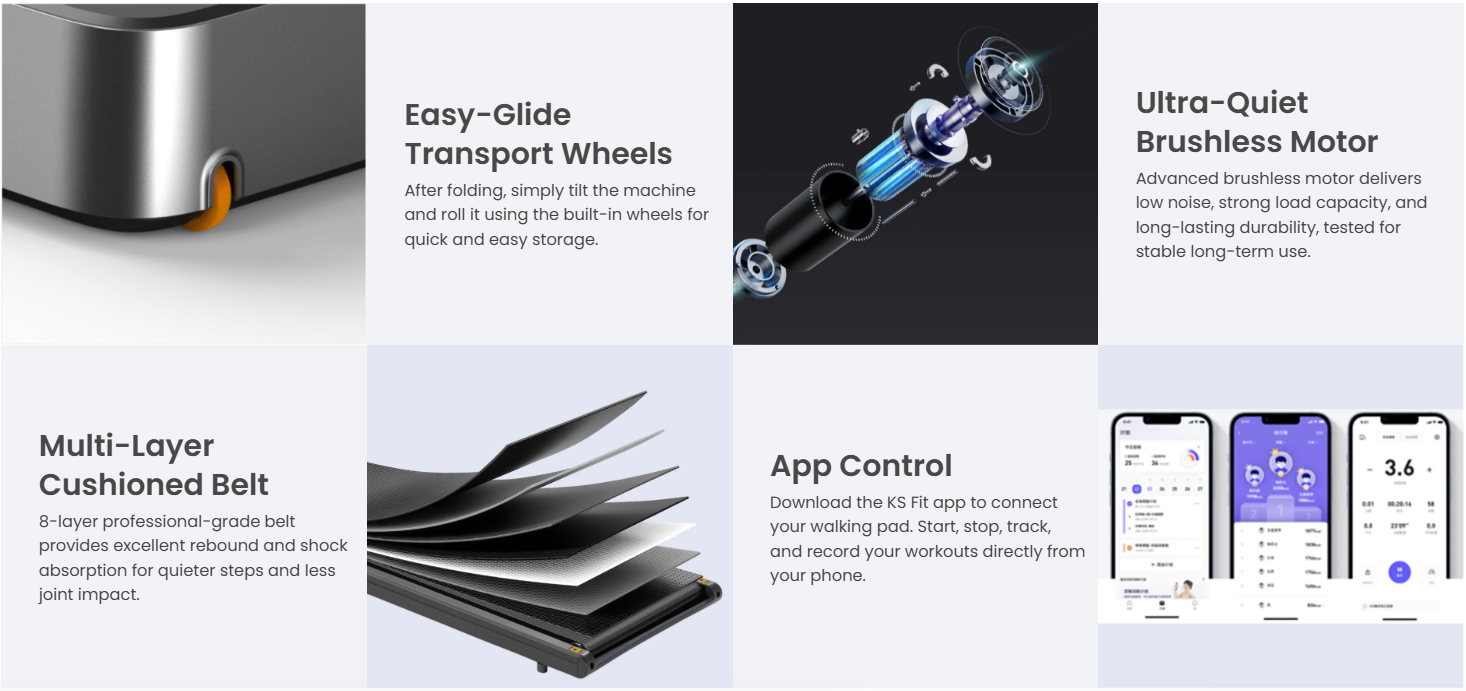 Enjoy an upgraded top speed of 5 mph (8 km/h) for faster walking and light jogging. Quiet, smooth, and smartly connected, this WalkingPad fits perfectly into your home or office — helping you stay active without taking over your space.
